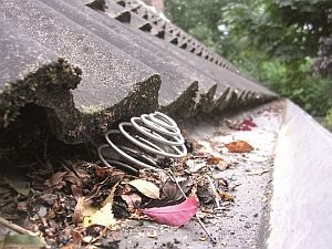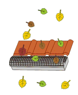alternatief voor de bladvanger in de dakgoot: bladscheider / bladvanger (een voorbeeld, zie verder bij hemelwaterafvoer): ![]() |