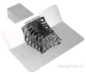 kiezelbak van aluminium bij een plat dak met mastiekhoek, met uitloop (zijuitloop) en bladvanger/grindvanger (bengshop): ![]() |