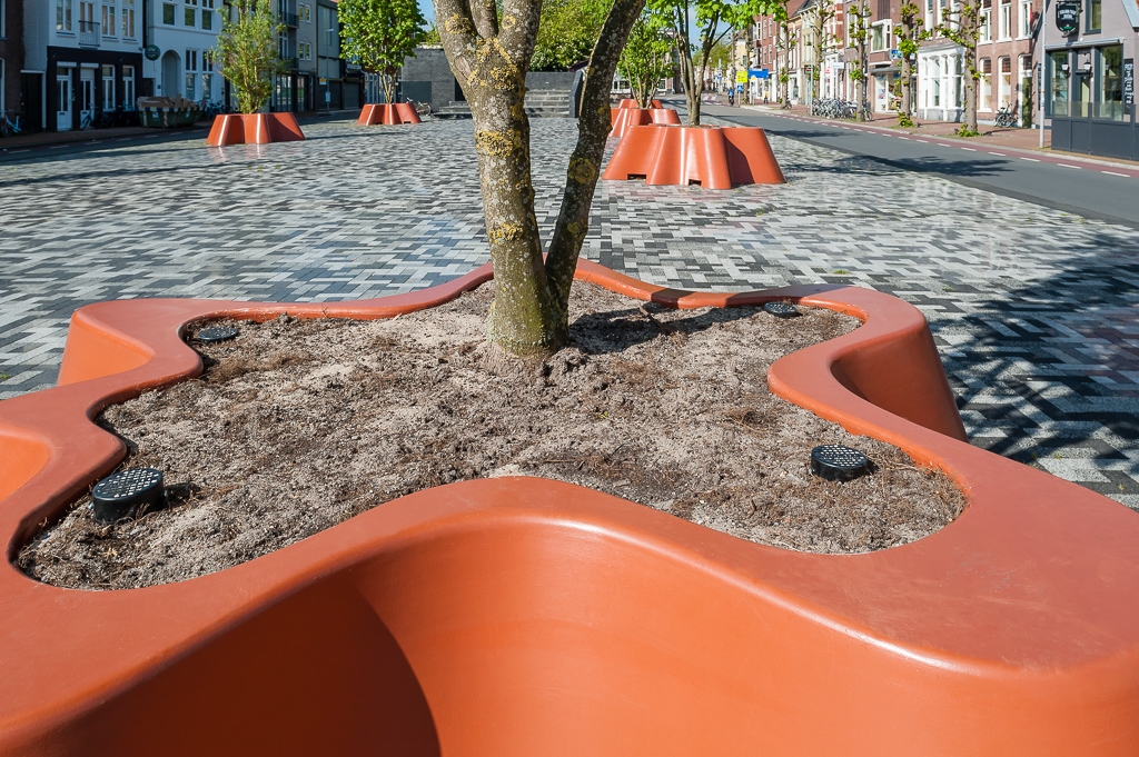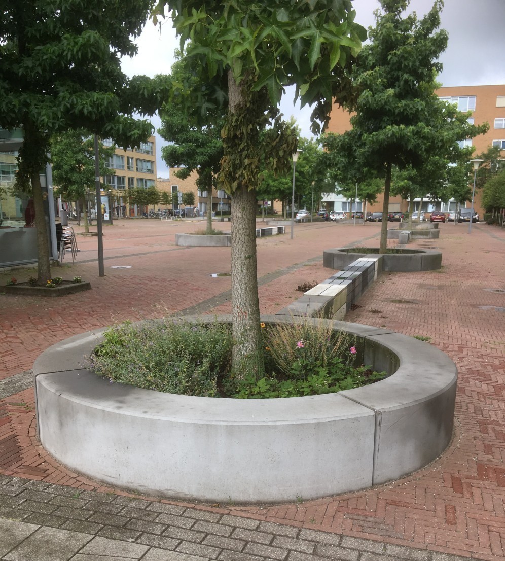 - bijpassende boombeschermers mogelijk zijn (stevig staal, cortenstaal of