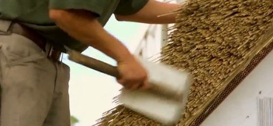 | aankloppen van de breeuw; let op de ventilerende knelplank (van den bergh rietdekkers):  |