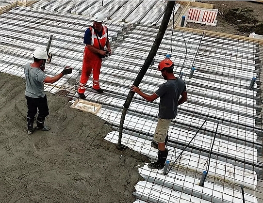 broodjesvloer, storten druklaag vanuit truckmixer met slang (havebo-vloeren): ![]() |
