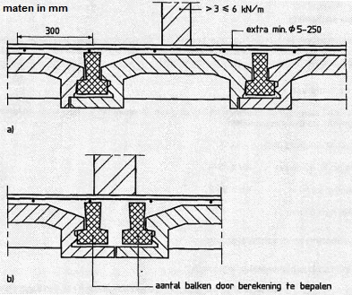 - Let op bij hogere puntlasten op het dunne betondeel van de broodjesvloer.