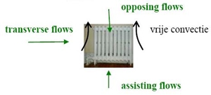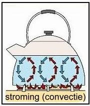 - convectie / stroming = overdracht van warmte door beweging van lucht of water o.d. in een object en/of contact tussen dat stromend medium en de wand van het object