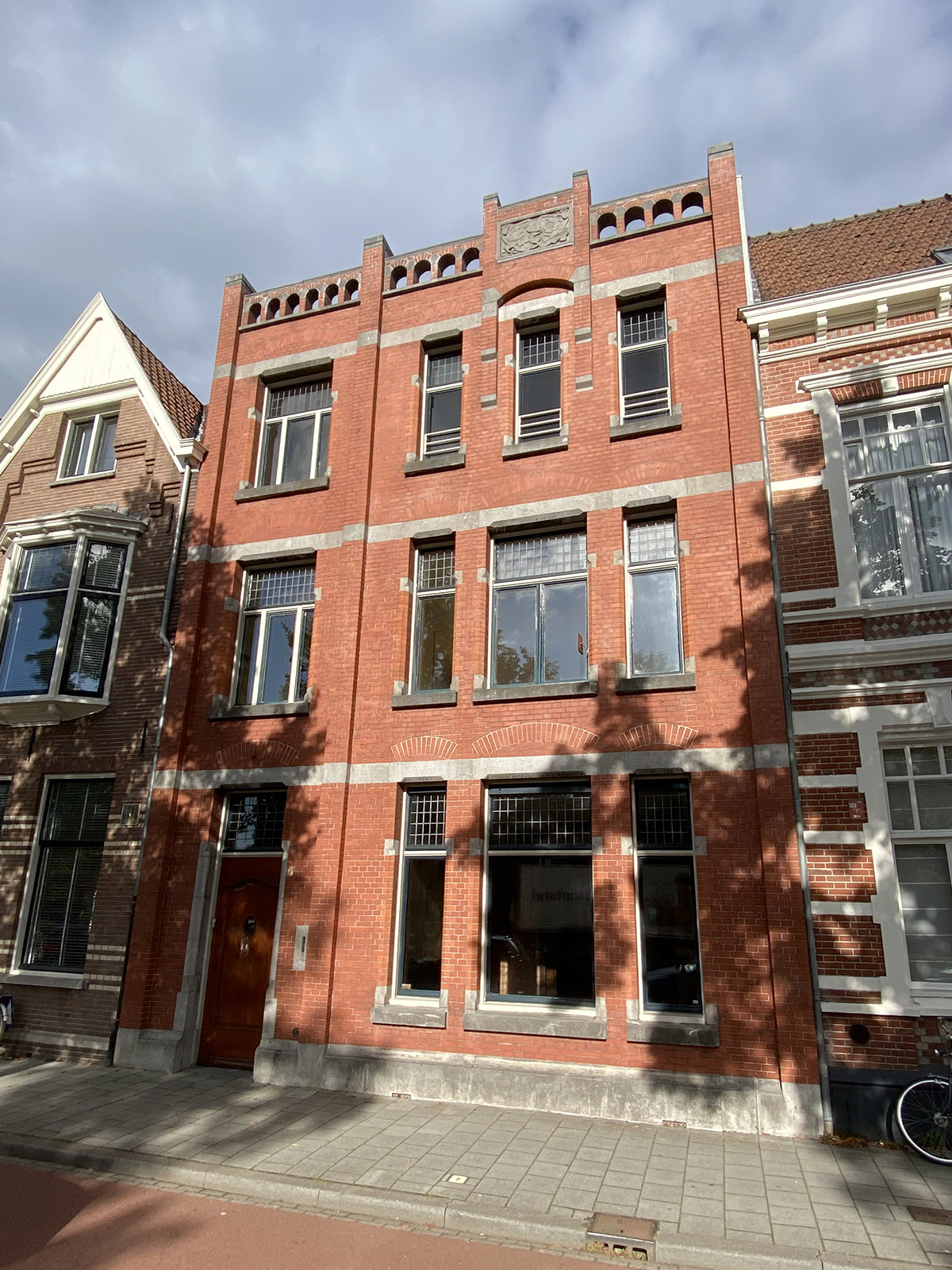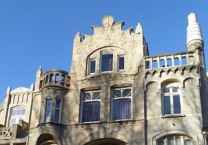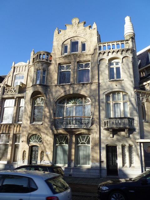 dakbalustrade, opengewerkt en dicht (geheel links), wonderlijk ontwerp, laan van meerdervoort 215, den haag, 1900, jugendstil pand, (copyright arno weltens): ![]() |