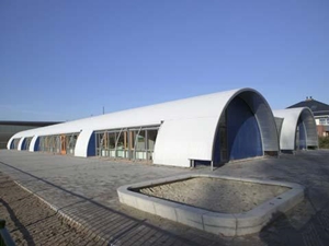 Een gebogen dak in een segmentvorm (segment als deel van een cirkel; foto Repon Maastricht): ![]() |
