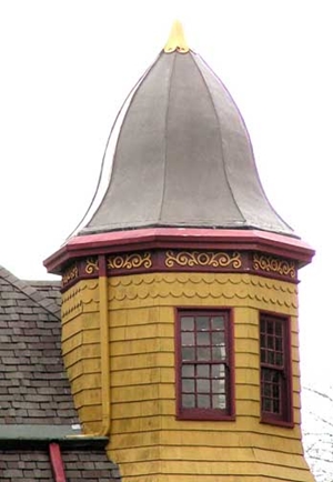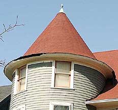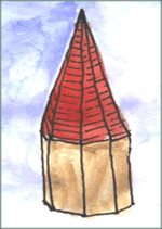 kegelvormig dak dat neigt naar een klokdak (zie ook torendak): ![]() |