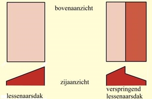 Een lessenaarsdak heeft één hellend dakvlak met een helling van tenminste 15 graden. (Het onderwerp lessenaarsdak behandelt de voor- en nadelen van een lessenaarsdak.)