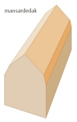 | Een mansardedak is een zadeldak of schilddak waarvan elk dakvlak geknikt is. De ondervlakken zijn steiler dan de bovenvlakken waardoor meer ruimte op de dakverdieping ontstaat. De naam is afgeleid van de 17e-eeuwse metselaar, beeldhouwer en architect Francois Mansart die vaak dit type gebouw ontwierp. Ook het Franse woord mansarde (zolderkamer, dakkamer) is wellicht van Mansart afgeleid. |