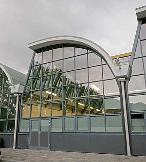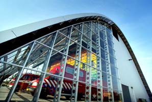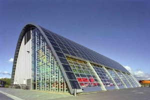 Golvend dak van Koppert BV, Berkel en Rodenrijs (arch. Habeon Heembouw, gelamineerde liggers en foto Heko Spanten): |
