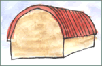Een dak in de vorm van een halve, liggende parabool: ![]() |