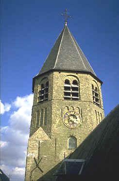 eenvoudige insnoering, kerk oosterbeek, toren is vierhoekig en spits is zowel boven als onder de insnoering viervlakkig (foto hans braakhuis): ![]() |