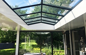 Er zijn ook varianten mogelijk, zoals bij het Vrijheidsmuseum in Groesbeek, waar de shaded dome een dak is op een betonnen wand. Hier is ook in het pakket een isolatielaag toegevoegd.