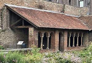 lessenaarsdak van pandhof sinte marie, in de buurt van de mariaplaats, utrecht; er is duidelijk gelijkenis met een afdak door het ontbreken van een groot deel van de "rondgang" (foto joostdevree): ![]() |