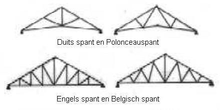 duits spant, polonceau-spant, engels spant en belgisch spant: ![]() |