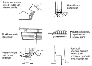 enkele voorbeelden van bouwkundige maatregelen ter bescherming van gelamineerd hout (heko spanten): ![]() |