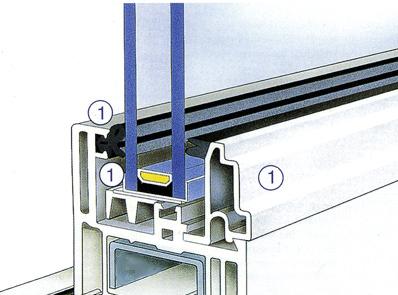 de pvc glassponning is hier door de constructie niet duidelijk maar o.m. de onderdelen 1 omvatten de sponning (de sponning is immers de ruimte); de bovenste 1 geeft de rubberen glasdichting aan: ![]() |