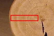 Spinthout steekt bij sommige houtsoorten duidelijk af tegen het kernhout.
