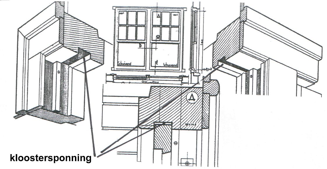 plaats van de kloostersponning bij een kozijn; klik voor groter: ![]() |