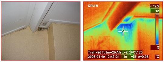 koudebrug met schimmel en de infrarroodopname ervan, blauw is koud (lbp|sight):![]() |