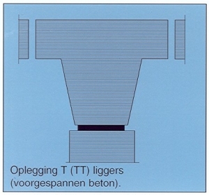 T-ligger van voorgespannen beton met (zwarte band) vilt eronder: ![]() |