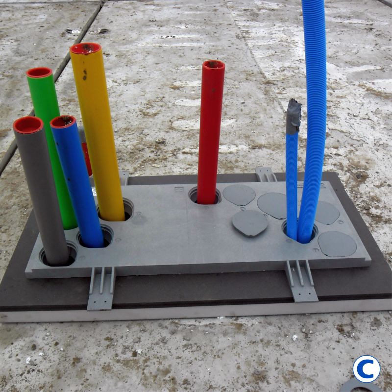 - bij doorvoeren, dus langs leidingen die naar of van buiten lopen (kieren bij leidingen voor water, elektra, gas, internet, bij kabels van airco, warmtepomp, buitenverlichting, zonwering, bij afvoerbuizen, dozen voor ventilatie en luchtverversing; denk bijvoorbeeld aan Celdex Airseal Meterkast Manchet)