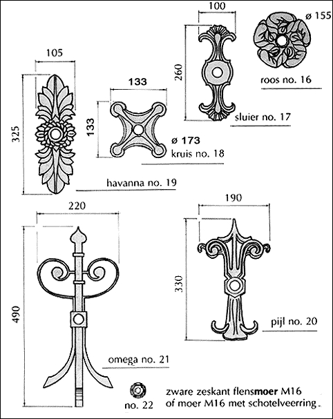 muurankers, recht en halfrond (booischotse metalen): ![]() |