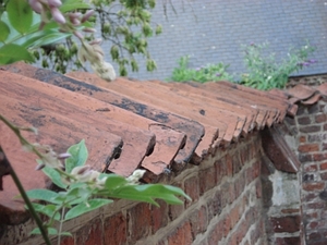bij ontbreken van een muurdeksel: het voegwerk tussen bakstenen "spoelt weg" (foto joostdevree): ![]() |