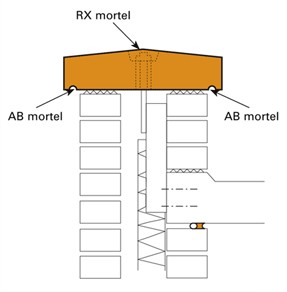 ab-mortel, voor bijvoorbeeld bevestigen muurdeksel aan opgaand werk; de ook in de afbeelding vermelde rx-mortel wordt toegepast voor bijvoorbeeld het herstellen van kleine beschadigingen en het dichtzetten en afwerken van sparingen van o.m. hijsvoorzieningen (nehobo): ![]() |