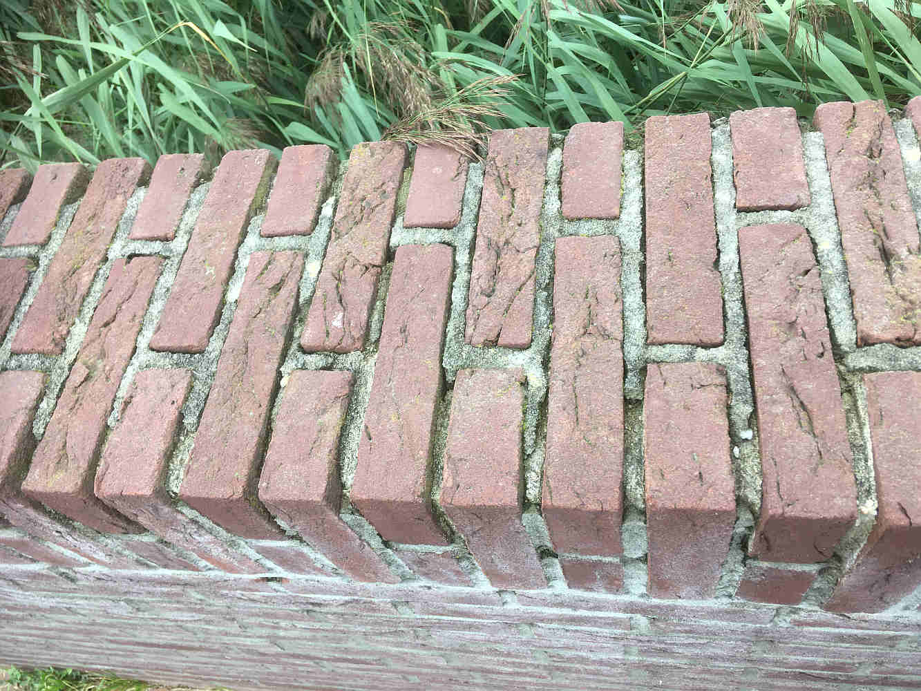 muurtje dat geen muurdeksel heeft: het voegsel "spoelt weg" en