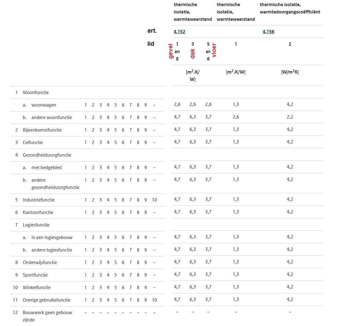 Voor nieuwbouw gelden in Nederland door de nieuwe BENG-eisen de volgende Rc-waarden (tabel in het Bbl):