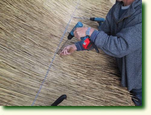 ver, er wordt begonnen aan ons eerste rieten dak.