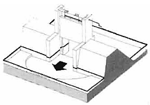 - voorkwamen dat het inundatiewater het ondergelopen gebied uitstroomt (damsluizen); bij de damsluis kunnen in het sluishoofd schotbalken worden geplaatst om het water tegen te houden, zie ook bij coupure.
