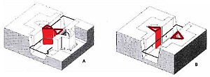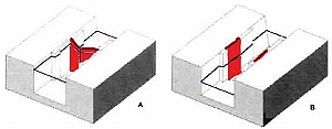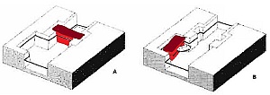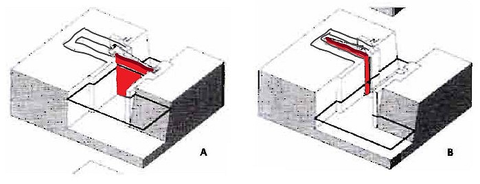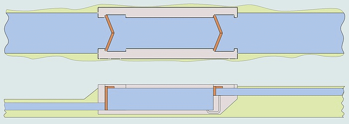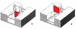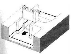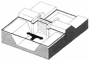 Gekoppelde deuren: twee paar puntdeuren die achter elkaar zijn geplaatst, en in dezelfde richting draaien, "punt" van de deuren is naar het buitenwater.