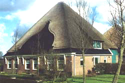 - Pannendak boven het woongedeelte van de boerderij: "Een afgewerkt pannendak is aantrekkelijker dan een niet afgewerkt rieten dak. Minder stoffig en comfortabeler. Een van de eerste vormen van isolatie."