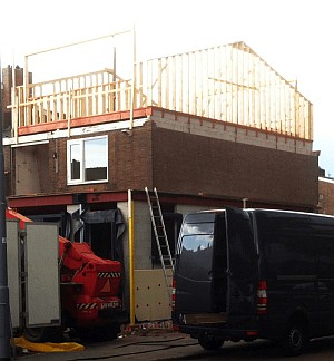stokkenwand bij optoppen met een verdieping houtskelet (foto joostdevree): ![]() |