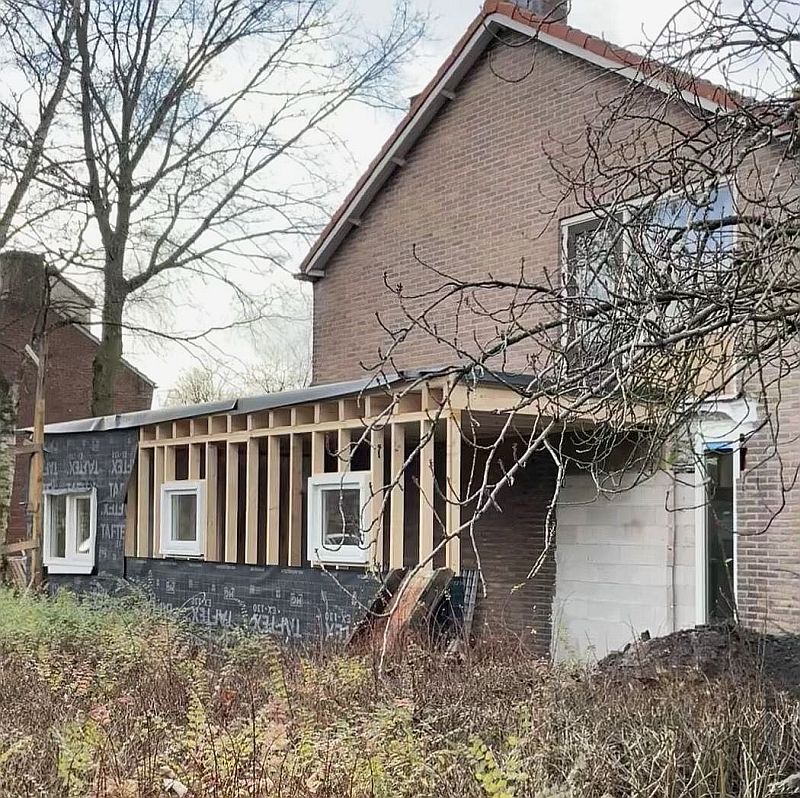 stokkenwand met dampremmer bij een aanbouw; klik voor groter (foto joostdevree): ![]() |