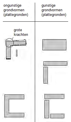 ontkoppelde bouwdelen zijn te overwegen (let ook op de "regelmatigheid van