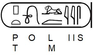 | cartouche met de hiërogliefen van farao ptolemeus, geschreven van rechts naar links (british museum):  |
