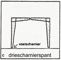 c. met voetscharnieren, o.m. het  driescharnierspant (twee voetscharnieren en