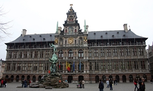 | laat-renaissance, hoge ramen (de naar voren komende middenpartij is niet echt renaissancistisch, de plint daarentegen weer wel), stadhuis, antwerpen, arch. cornelis florisz. de vriendt, 1561 (copyright tijl vereenooghe, archeonet vlaanderen):  |