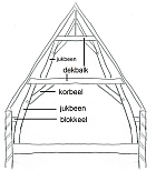 | klik op de afbeeldingen voor groter! benamingen van de onderdelen van een spantconstructie (boek houtconstructies zwiers, 1920):  |