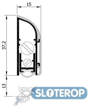 opbouw, tochtprofiel vergelijkbaar met de tochtlat hierboven maar van kunststof en minder dik (5 mm) terwijl toch 7 mm wordt overbrugd; sluit iets minder goed dan de houten versie met ronde rubberen profiel; klik voor een grafische weergave van het profiel (elton model pts): ![]() |