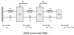 De eenvoudigste tuned mass damper bestaat uit een massa (groot), een veer en een demper. Dit wordt een Single Degree of Freedom Linear Oscilator genoemd (SDOF).