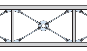 trekstaven (trekstangen) bij een windverband, gekoppeld door een koppelschijf, detan trekstangensysteem (halfen): ![]() |