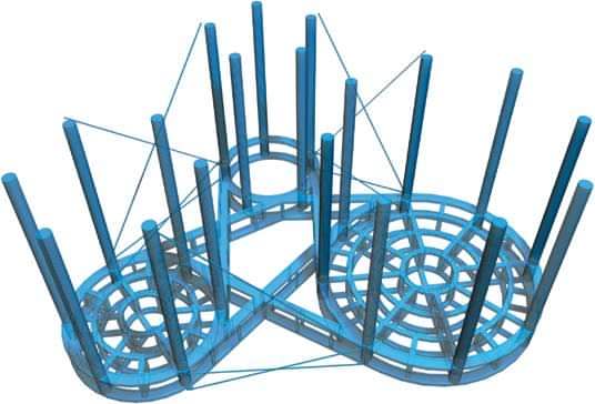 dunne windverbanden bij en futuristisch gebouw (baunetz): ![]() |