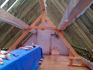 a-spant; duidelijk is de A in het spant te herkennen (smets dak- en timmerwerken):![]() |