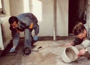 Voorbeeld van aanbranden: "Servofix SLA component A met ca. 27% water mengen en met een kwast of veger dekkend aanbrengen. Op de nog glanzende aanbrandlaag de aardvochtige specie aanbrengen die dient te worden verdicht. De tussenlaag mag niet glad worden afgewerkt."