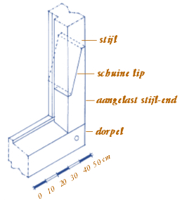 kozijnstijl met aangelast stijl-end door schuine liplas (naar buiten afwaterend zou nog beter zijn) (cultureel erfgoed): ![]() |