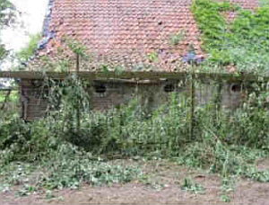 een ander voorbeeld van een aangekapt dak, vermoedelijk te groot om van een aanluiving te spreken; zie bij dakvormen (knikdak, aangekapt): ![]() |