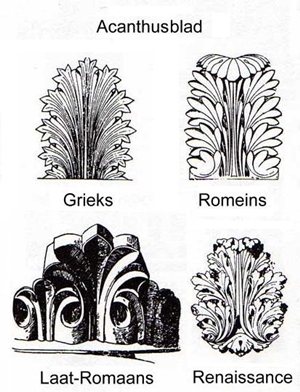 Acanthusbladeren werden als patroon voor loofwerk veel toegepast door de Grieken en Romeinen